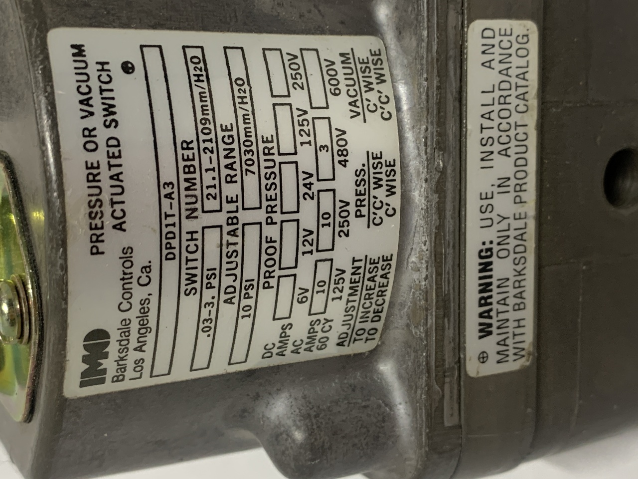 Barksdale DPD1T-A3 Pressure or Vacuum Actuated SwitchBarksdale DPD1T-A3 Pressure or Vacuum Actuated SwitchBarksdale DPD1T-A3 Pressure or Vacuum Actuated SwitchBarksdale DPD1T-A3 Pressure or Vacuum Actuated Switch